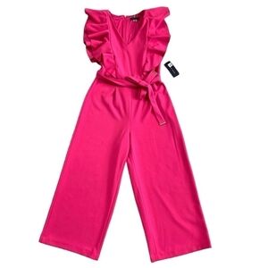 Discover the chic NWT Women’s Jumpsuit by Tommy Hilfiger in stunning Magenta Pink. This #sleevelessjumpsuit features a sophisticated V-neck with #ruffled details, perfect for a stylish look. Designed with a cropped leg and side zip closure, it ensures ease of wear.