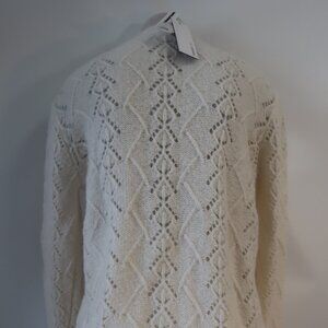 NWT Women Minnie Rose Vanilla Pointelle Mohair Wool V-Neck Cardigan Sweater XS/S
