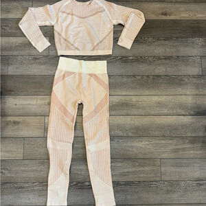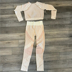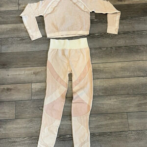NWT Women Seamless Stylish Beige Activewear Set Long Sleeve Sz M
