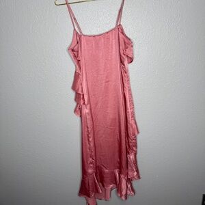 NWT Women Steve Madden Ruffle Satin Midi Dress in rose mauve size Large -cp
