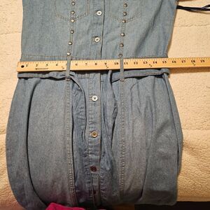 Blue Light denim jean dress metal snaps belted