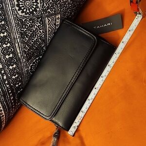 NWT Women Tahari Wallet. Measurements posted. The front: 6 compartments to put pictures. 3 slots to put cash bills, lots to put credit cards. The back: w zipper, has 3 compartments w one zipper to put coins. Outside back w zipper can also be used to put coins.. It's very spacious & beautiful. #13