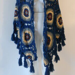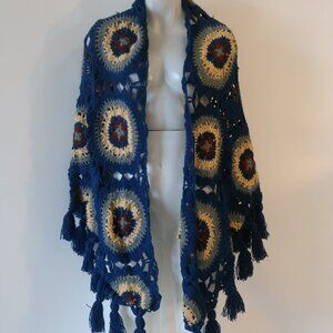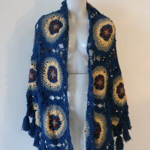 NWT Women Tina Demel Teal Multicolor Patchwork Fringed Sunshine Shawl OS