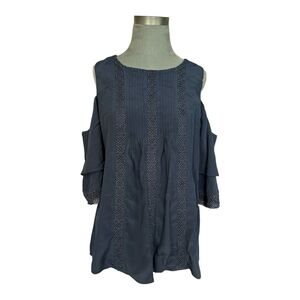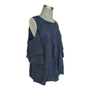 #AnnTaylor #WomensBlouse #ColdShoulder #CrochetLace #RuffledBlouse #RelaxedFit #NewWithTag