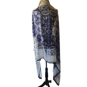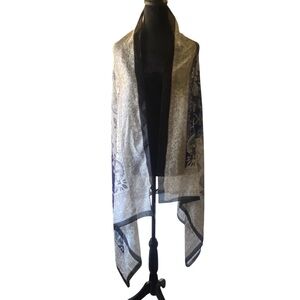 Chic scarf with a blue and white floral paisley design. Perfect for adding elegance to any outfit.