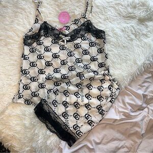 NWT- Women’s 2 piece Black and White Lace Trim Sleepwear Set
