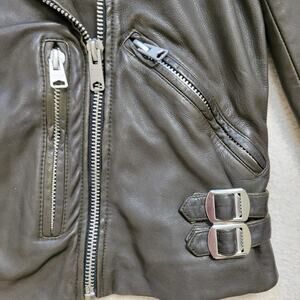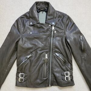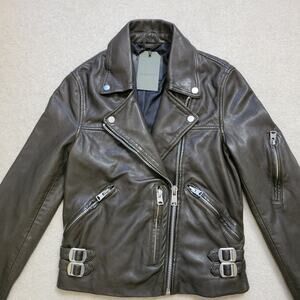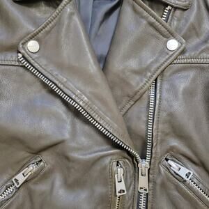 NWT Women's 4 Allsaints Prescott Leather Biker Moto Crop Jacket Dark Khaki Green