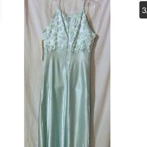 NWT Womens 6 Betsy & Adam Seafoam Long Satin Formal Dress. Womens 6 New with Tags! By Betsy & Adam This stunning long seafoam color dress is satin. It features a beautiful floral bodice. The peekaboo cut out waist is adorned with rhinestones. There is a faint spot on the back near the hem ( see pic) The dress zips in the back Measurements while flat are Bust: 15" Waist: 13" Length: 57" This dress would be great for any special occasion!