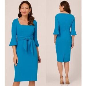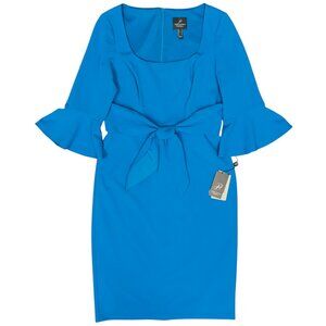 NWT Women's ADRIANNA PAPELL Tie Waist Pencil Midi Dress Blue | Size 8