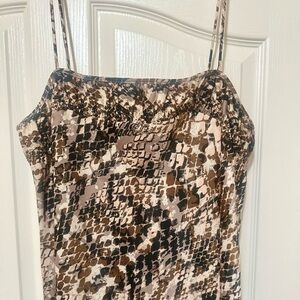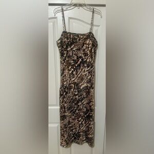 NWT Women’s ANTHROPOLOGIE SQUARE-NECK SLIP Brown Black Beige DRESS. Size Large.