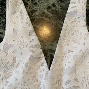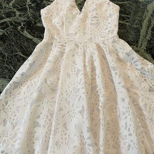 NWT Women's AQUA MINI LASER CUT PARTY DRESS size S white $98 V-neck fully lined