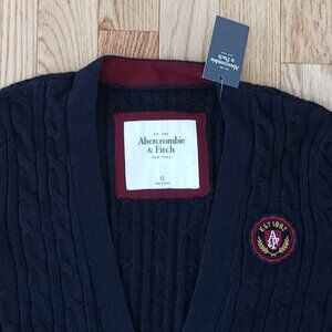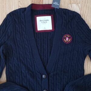 NWT Womens Abercrombie Vintage Cardigan Sweater Cotton Blend Navy Cable Knit Y2K