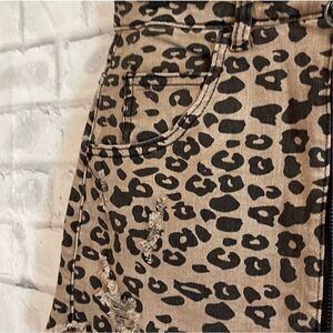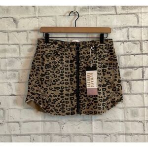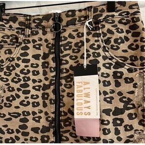 NWT Womens Almost Famous Denim Animal Print Leopard Distressed Jean Skirt - Sz 9