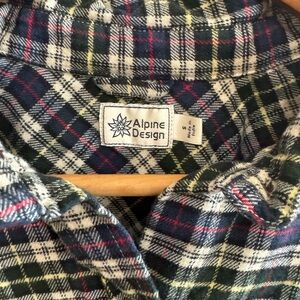 NWT!! This women's Alpine Design 100% cotton flannel, in size Small, is perfect for any casual occasion. It is a multicolored plaid (green, red, blue and white/ tiny yellow too) and comes in a slightly oversized style.