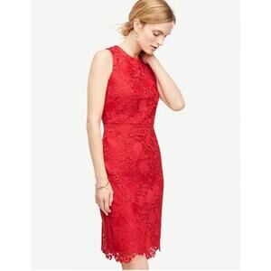 NWT Women's Ann Taylor Lace Sheath Dress in Bright Geranium sz 14 Romantic Glam
