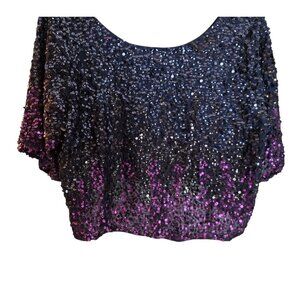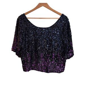 NWT Women's - Anthropologie Let Me Be Ombre Cropped Sequined Blouse, Size XL