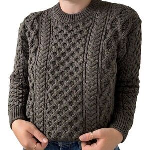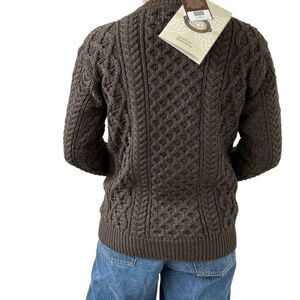 NWT Womens Aran Sweater Market Wool Olive Green Irish Fisherman Sweater Sz M