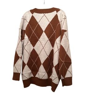 NWT Women’s Argyle Print Long Sleeve Crew Neck Sweater Tan/Brown Size L