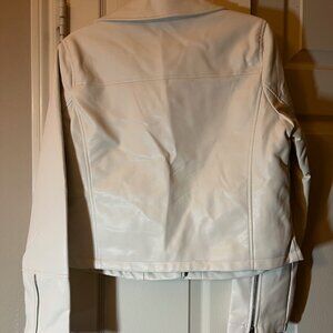 NWT Women's Ashley Outerwear Ivory Faux Leather Moto Jacket Large - Francesca's