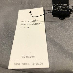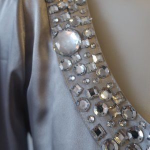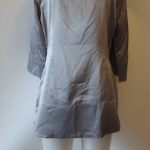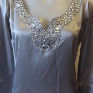 NWT Womens BCBGMaxazria Silver Satin Rhinestone V-Neck Tunic Top M *
