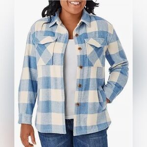 NWT Women’s Baby Blue Plaid Cozy Wool Blend Fall Shacket Size XXL Members Mark