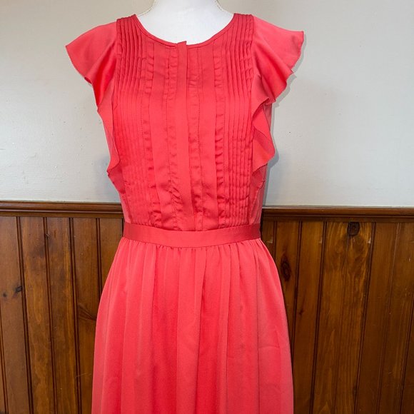 NWT Women's Banana Republic Coral Ruffle Flutter Sleeve Dress 4 MSRP $128
