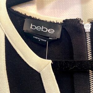 NWT Women’s Bebe Black & White Seamed Bandage Mini Dress Size Small