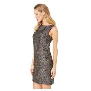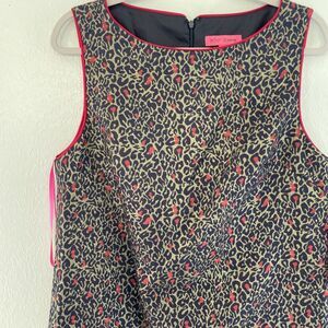 NWT Womens Betsey Johnson Leopard Gold Metallic Shift Dress Navy Red Multi 14
