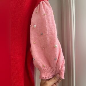 NWT Women’s BiBi Color Block Short Sleeve Sweater with Pearls Size XL