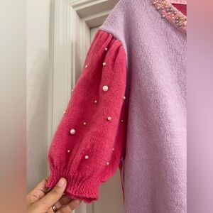 NWT Women’s BiBi Color Block Short Sleeve Sweater with Pearls Size XL