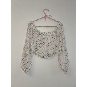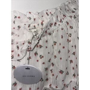 NWT Women’s Blouse Sz Lg Smocked Floral White Event Peasant Easter cottage Weste
