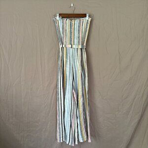 NWT Women's Blue Island Multicolor Strapless Jumpsuit Size Medium Coastal Beach
