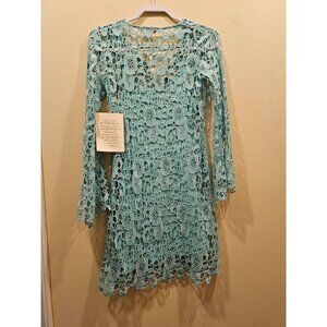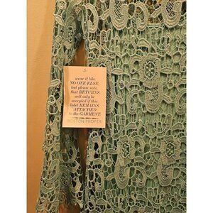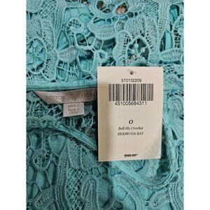 NWT Women's Boston Proper Bell Sleeve Crochet Dress Size 0. 100% Polyester. Measures 35" long. See pictures for more measurements. The color is called Bermuda Bay. It's a bluish green, more on the light green side. Smoke free home.