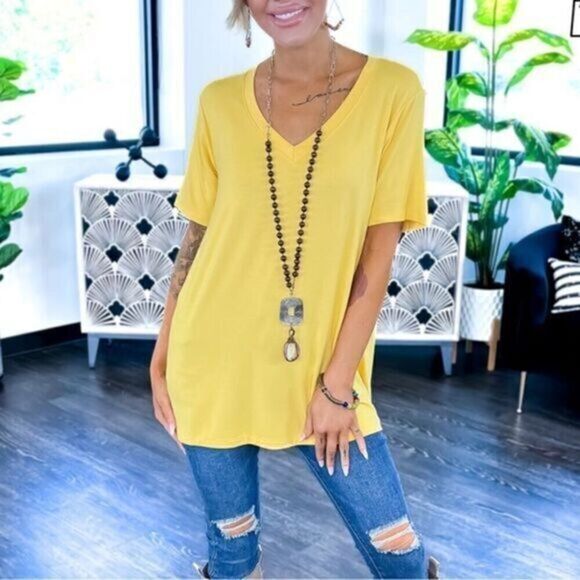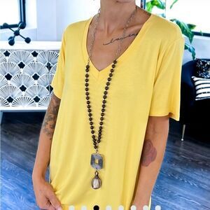 NWT Women’s Boutique Yellow Boyfriend Style V Neck Tee Shirt Top - Size M (8-10)