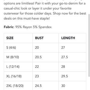 Relaxed fit 95% Rayon - 5% Spandex Pit to pit approx 20.5”