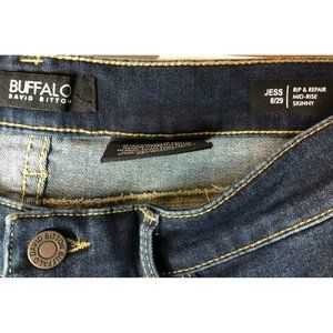 Stylish, mid-rise skinny jeans from Buffalo David Bitton. Features trendy rip & repair design. Perfect for casual wear. Size 8/29.