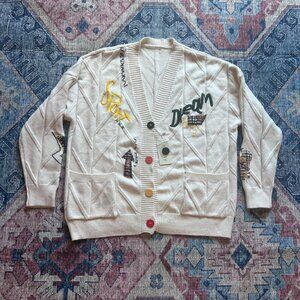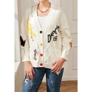 NWT Women's Button Down V Neck Embroidered Cardigan Sweater Embellished