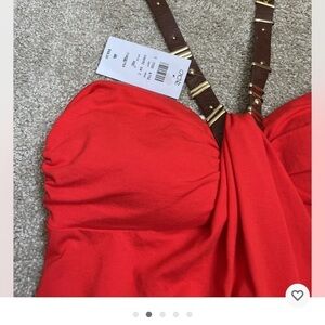 NWT Women’s Cache Red Top Tunic With Brown Leather Strap Size XS