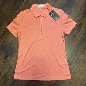 NWT Women's Callaway 1/4 Zip Short Sleeve Golf Polo XS Opti-Dri Firelight Orange