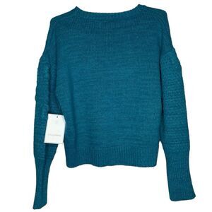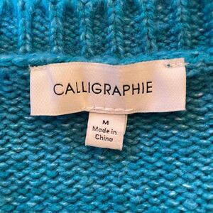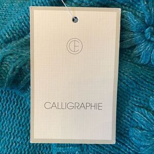 NWT Women’s Calligraphe Sweater size Medium. Blue with knitted floral design on the front. Comes from a smoke free dog home.