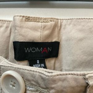 NWT Women’s Cargo Crop Pants. Unknown Brand “WOMAN”. 100% Cotton. Size 8 measures a 32” Waist x 22” Inseam with elasticized cuff.