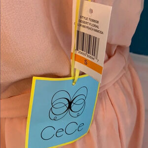 NWT. CeCe. Ruffled color block maxi dress. Pink and peach colors. Size Small.