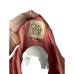 New With Tags Women's Chaser pink long sleeve 1/2 button lightweight hoodie. It is a long sleeve t-shirt with a hood. Not a thick hoodie. A peachy pink color.