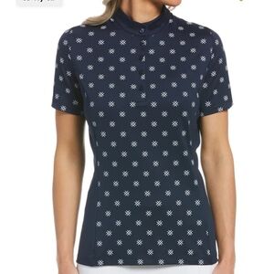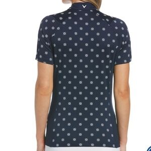 Designed for effortless movement with every shot, these performance womens golf polos are equipped with Swing Tech™ for added stretch in the shoulder seams for a full range of motion. This short sleeve golf top pops with a chevron floral print that is versatile enough to pair with a wide variety of bottoms.Opti Dri™ moisture wicking technology built into our womens golf shirts pulls sweat away from the body for on-course comfort throughout your round. Built-in sun protection prevents harmful UV rays from penetrating the fabric of the golf top, helping to protect covered skin on sunny days spent outdoors.