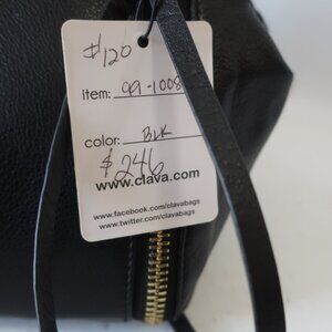 NWT Womens Clava Black Modern Leather Bucket Tote Shoulder Handbag