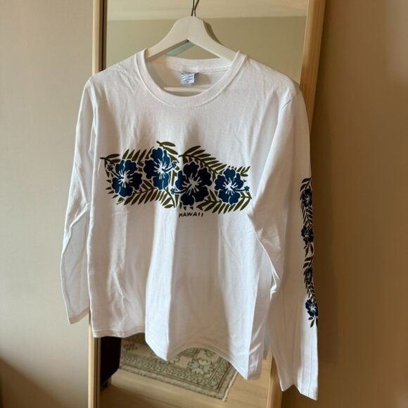 NWT Women's Crazy Shirt Retro Hibiscus Hawaii Print Long-sleeve T-shirt. Size XS.