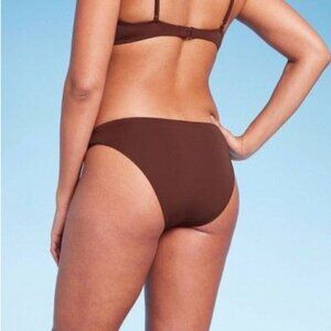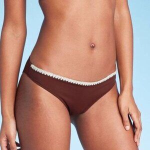 NWT Women's Crochet Trim Cheeky Bikini Bottom - Shade & Shore Brown Size L