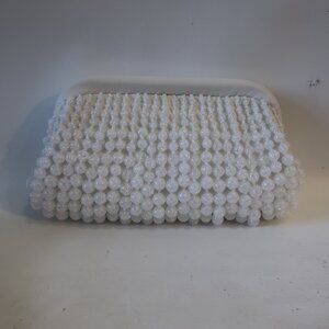 NWT Womens Cult Gaia White Clear Beaded Leather Nia Clutch Handbag