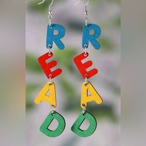 NWT Women’s Dangle Earrings “READ” Multi Color Elementary Teacher Educator
