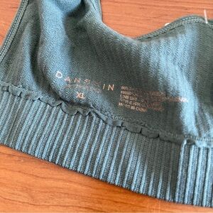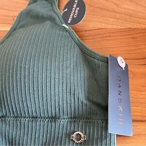 NWT Women’s Danskin Sports Bra Removable Cups Ribbed Olive Green Size XL